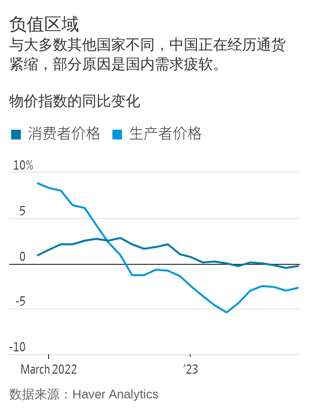 但随着西方国家的通胀担忧有所缓解,中国的通缩已成为更大的担忧。通缩预示着中国经济仍将面临困境,这可能意味着在中国开展业务的西方品牌销售额会下降。