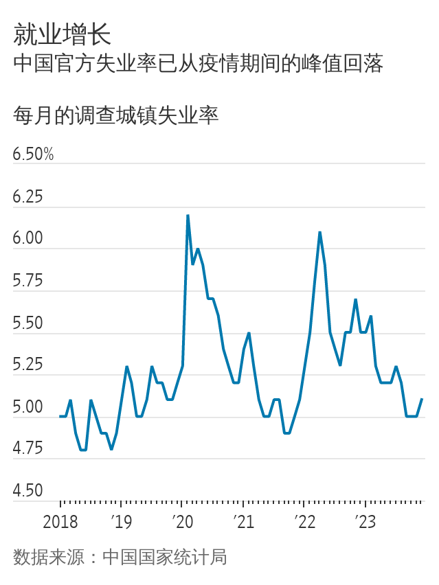 官方数据显示,12月份中国城镇调查失业率为5.1%。虽然这一数字高于美国3.7%的水平,但仍然相对较低,好于2022年全年5.6%的平均失业率。