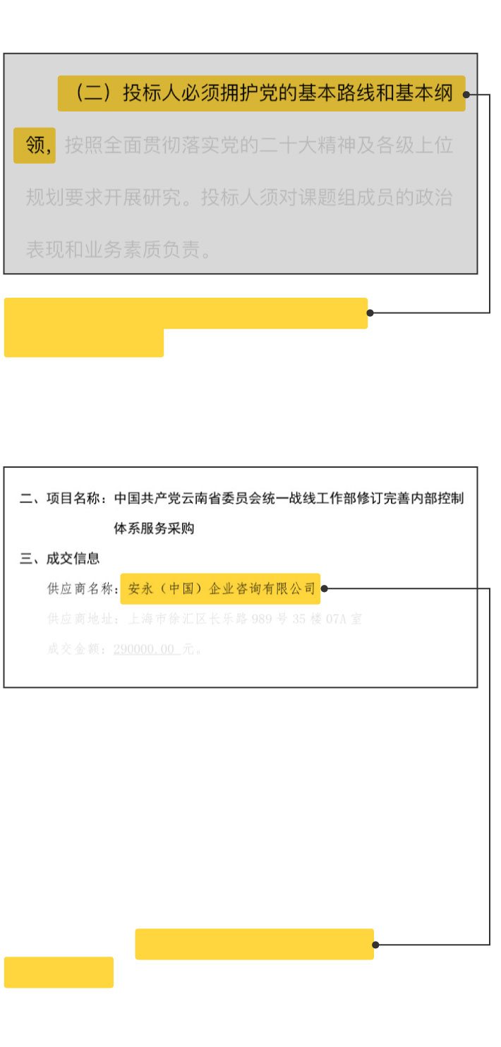 安永签署的一份合同涉及为中共统战部在云南省的一个地区办事处优化行政程序。统战部是中共管理国内少数民族和宗教团体的一个机构,还负责开展一些文化推广等不太敏感的活动。