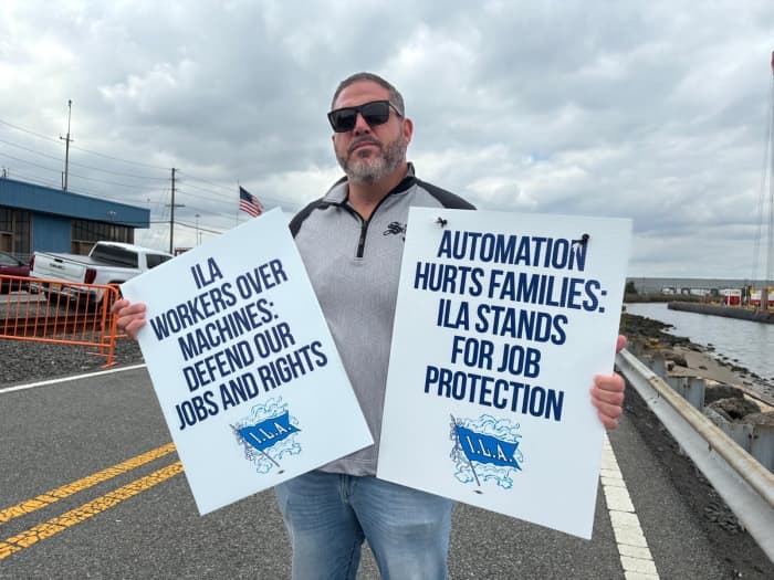 桑托罗是三个孩子的父亲,上周他参加了自由港外的罢工。他说,虽然裁员可能不是直接导致人们失业,但像他这样的起重机操作员立刻感受到了重组的影响。他赶紧打电话给其他码头,要求他们换班,但“这肯定无法弥补工作量的不足,”他说。