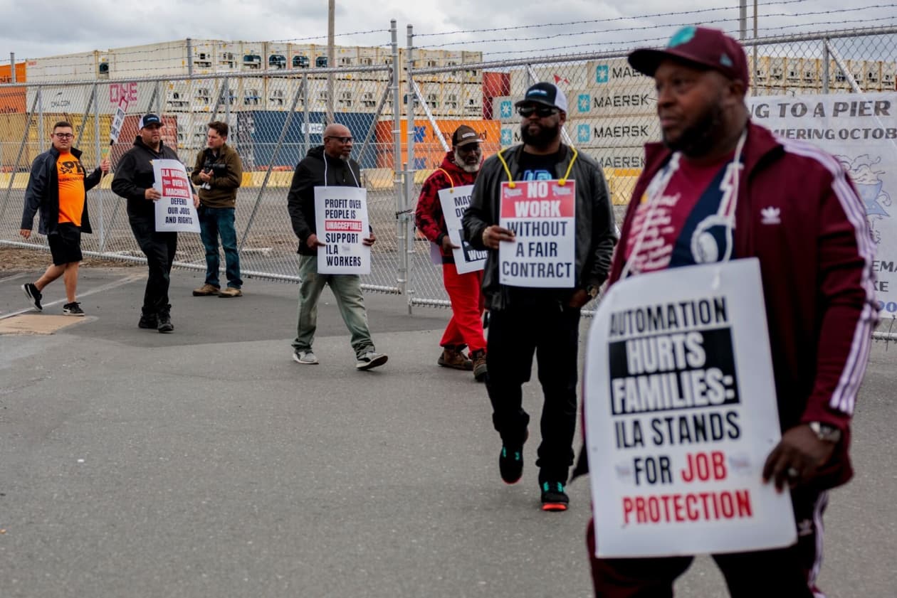 上周,数万名码头工人在东海岸港口重返岗位,此前,他们进行了为期三天的罢工,威胁到贸易和经济的稳定。工人们获得了 62% 的加薪。但一个更大、更棘手的问题仍然存在——这个问题也在其他行业中上演,从工厂到杂货店再到好莱坞:人类愿意向机器让步多少、让步速度有多快?