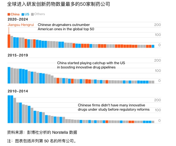 彭博新闻的数据分析侧重于创新药物,不包括仿制药组合、配方药物和生物仿制药。