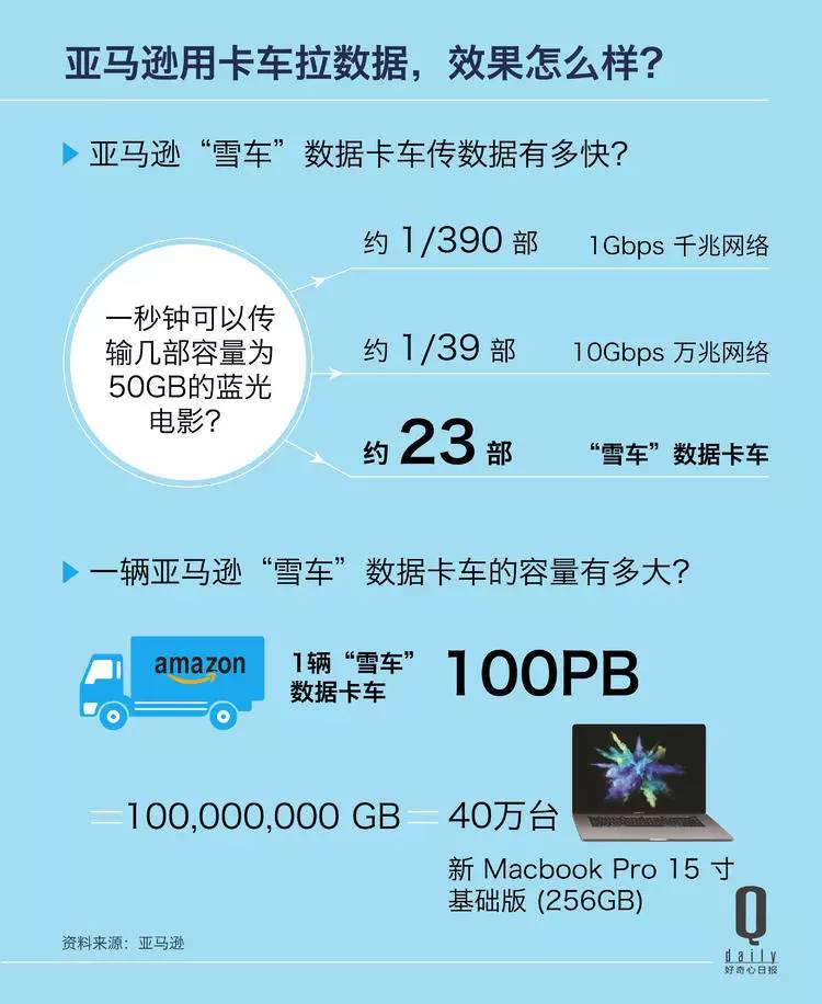 这新闻最早出现在2016年的搜狐网,但我竟然是今天才第一次从这个角度了解到,目前数据传输最快的方式是通过卡车拉硬盘的运输方式。