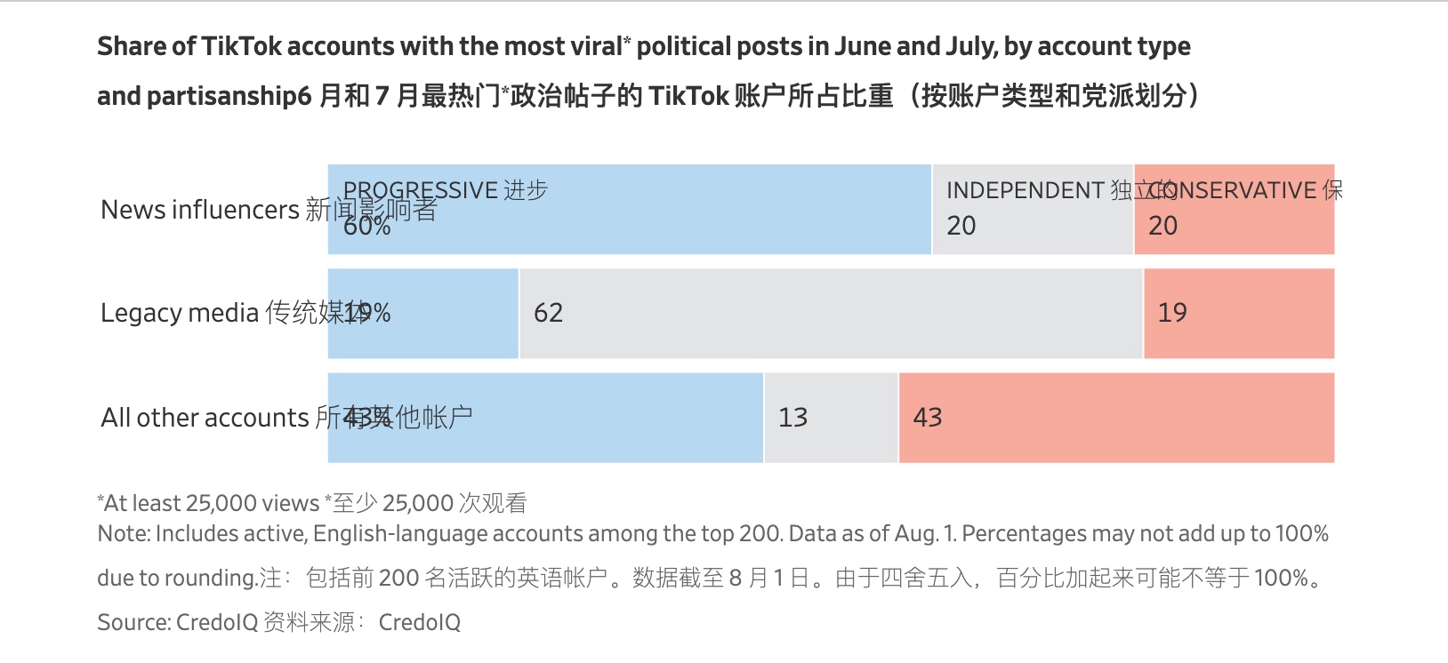 《华尔街日报》的分析发现,虽然来自表现最好的传统媒体帐户的病毒式帖子仍然具有更广泛的整体影响力,观看次数超过 12 亿次,但与新闻影响者群体相比,这些主流媒体的发布频率较低,病毒式视频也较少。